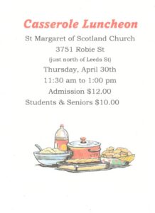 The Monthly Friends and Neighbours Pot Luck is on April 26 at 5 pm